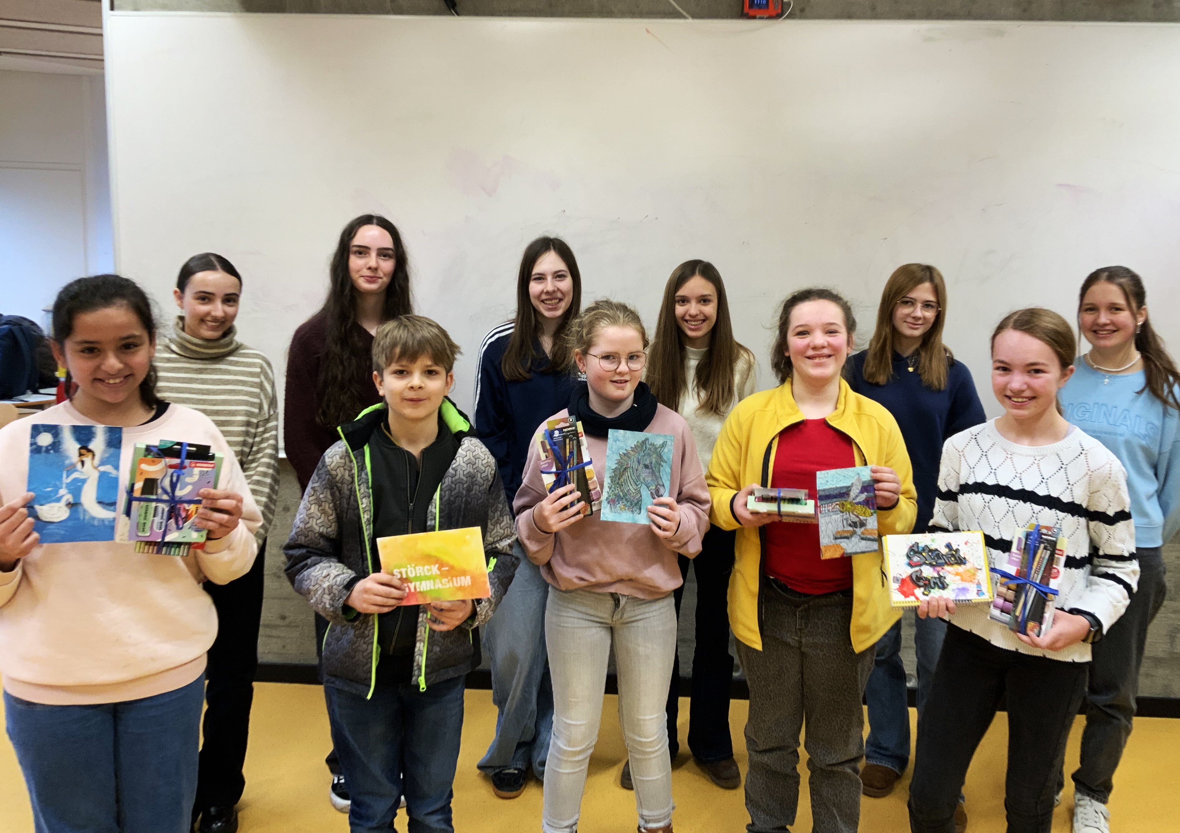 Der Schultimer ist am Störck-Gymnasium längst nicht mehr wegzudenken. Täglich hilft er Schülerinnen und Schülern, ihren Schulalltag perfekt zu planen. Eine Seite des Einbands ist bewusst leer gelassen, damit der Timer von Schülerinnen und Schülern persönlich gestaltet werden kann. Auch in diesem Jahr wurden jetzt die besten Motive der fünften und sechsten Klassen prämiert. In Klassenstufe fünf wussten die Gestaltungen von Teja Schulz (3. Platz), Merle Obert (2. Platz) und Sedef Can (1. Platz) die engagierte Jury aus Zehntklässlerinnen und Gerlinde Langenfeld zu überzeugen. Bei den Sechsern wurde Valentina Reiner Dritte, Emma Teufel Zweite und Nika Sumpf landete ganz oben auf dem Treppchen. Alle Gewinner bekamen von Michael W. Meier kleine Preise überreicht.