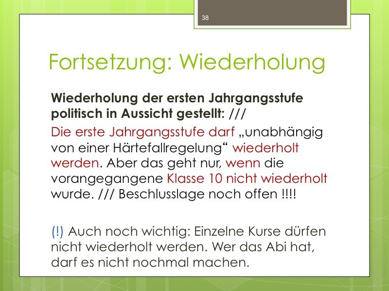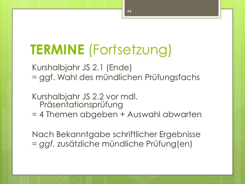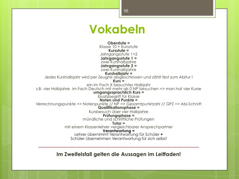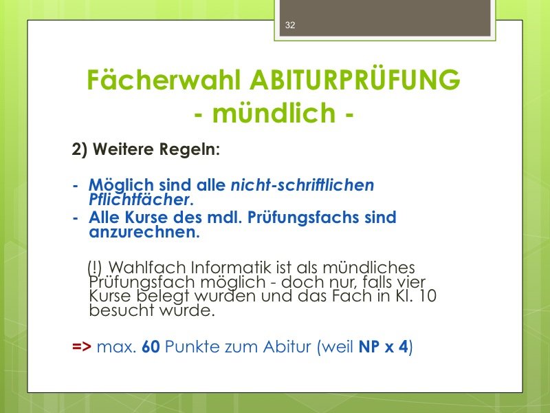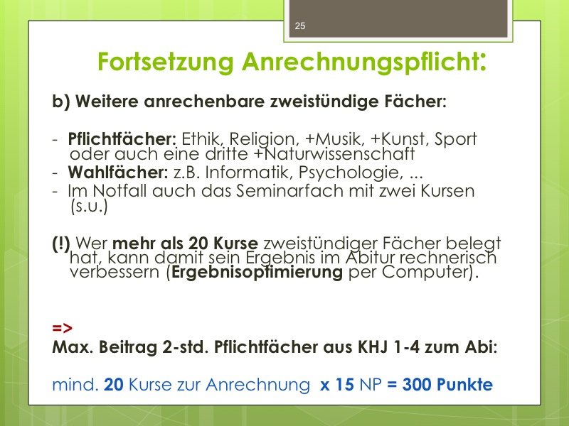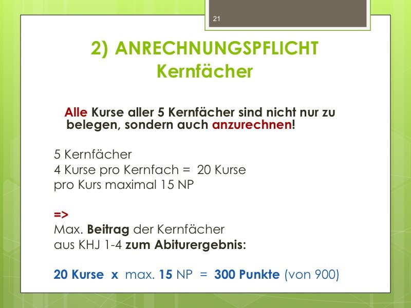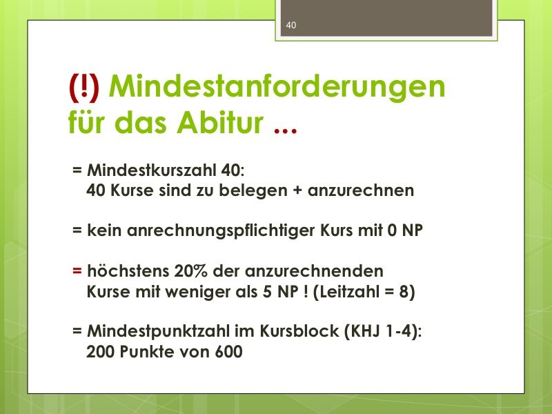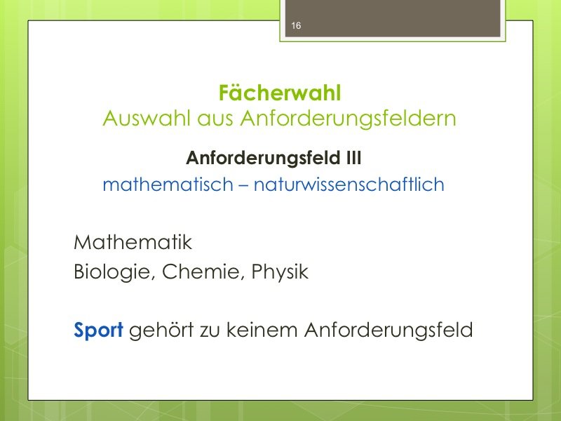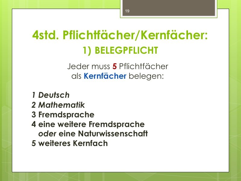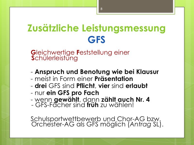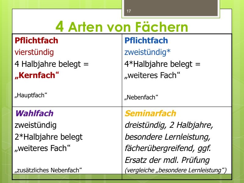 Ich werde den Weg ausschildern und Sie im Eingangsbereich begrüßen. Der Vortrag wird ungefähr eine Stunde dauern und einen Durchgang durch das Kurswahlprogramm mit einschließen. Ihre Anwesenheit ist erwünscht und angesichts des Alters Ihres Kindes in G8 sicherlich sinnvoll, aber nicht verpflichtend. Vielleicht können Sie es ja möglich machen, dass ein Elternteil kommt.