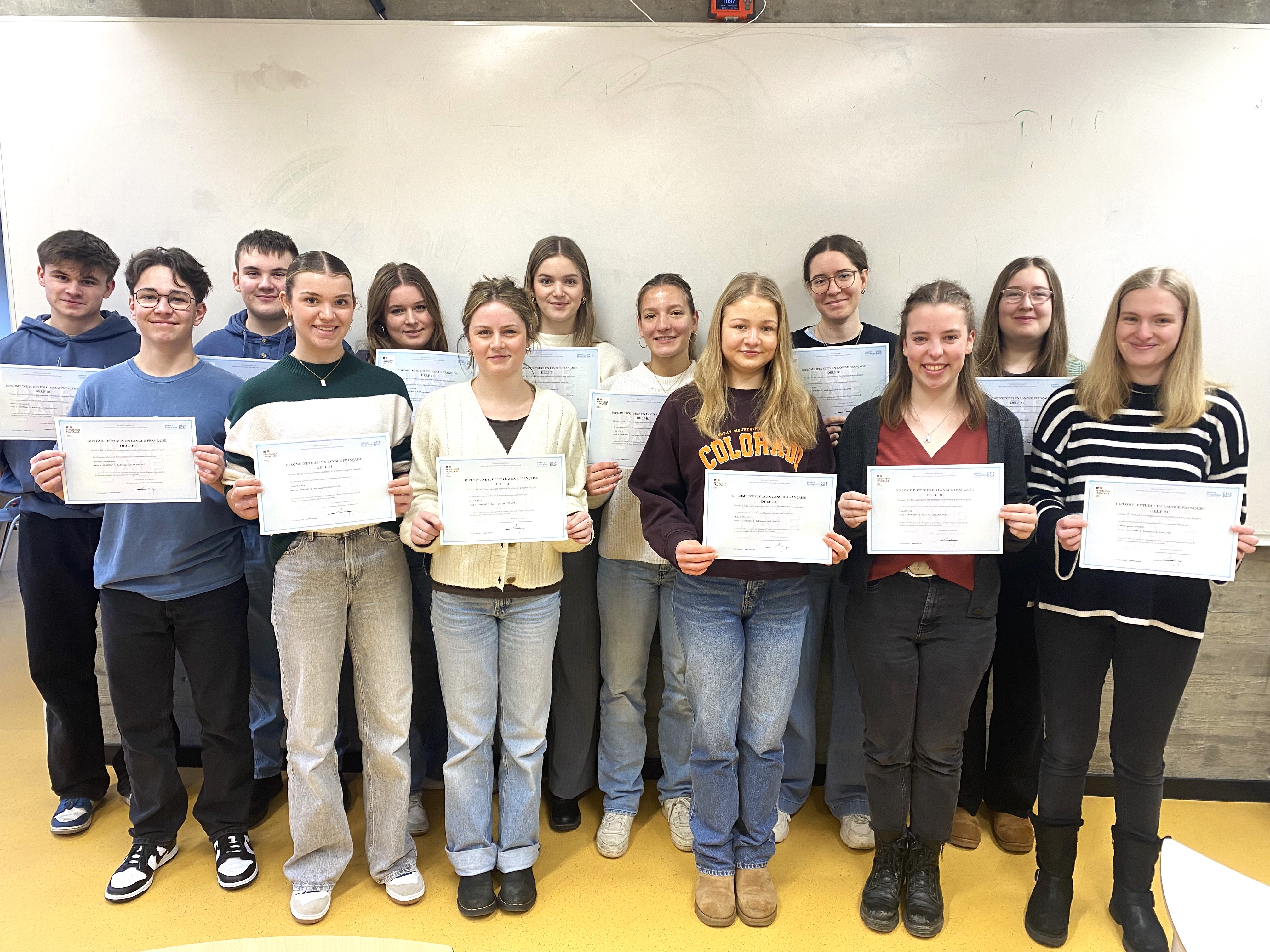Toller Erfolg für 18 Schülerinnen und Schüler des Störck-Gymnasiums: Lisa Stumpp, Lara Brendle, Anita Henkel, Antonia Dobe, Amely Kehle, Julia Prasser, Heike Widmann, Josefa Kerle, Lina Weizenegger, Simona Dreher, Finia Schnell, Johanna Müller, Pauline Nußbaumer, Jenna Striegel, Alexander Foht, Benedikt Zimmerer, Johannes Gebhart und Adrian Fürst haben die Prüfungen zum DELF Diplom erfolgreich absolviert und bekamen nun ihre Zertifikate überreicht. Das DELF Diplom DELF (Diplôme d'Etudes en Langue Française) ist ein standardisiertes und weltweit anerkanntes, staatliches französisches Sprachdiplom, das seit 1985 vom Ministère de l'Education Nationale in Paris vergeben wird. Bon travail!